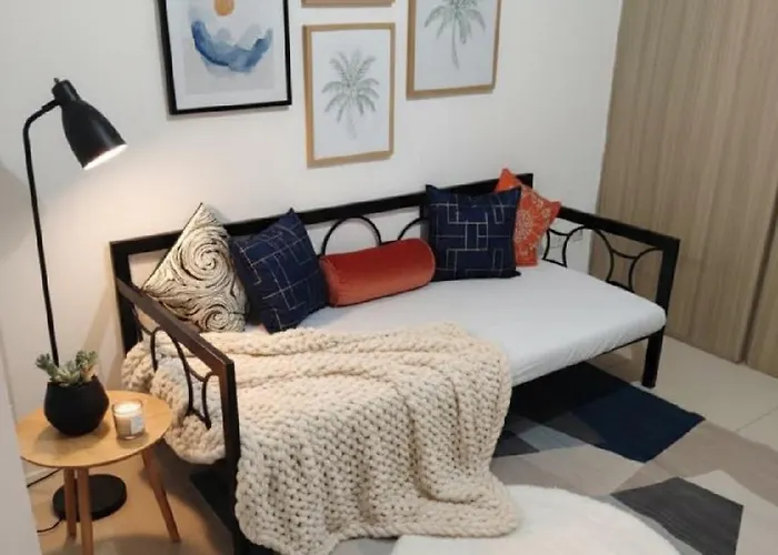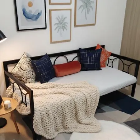 ベッドルーム1室のMall Of Asia Accommodation マニラ市はテラスがあり、F45 Training MOA Complexから徒歩で5分の場所に位置しています。 プールを利用でき、よりリラックスした滞在を楽しむことができます。